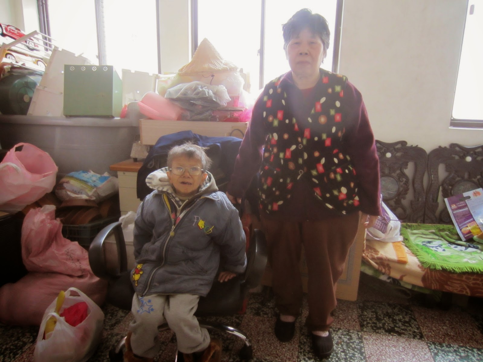 謝信妹的收入來源除了賣手工編織袋,也會去撿回收來賣,努力工作都都是為了照顧早衰症的兒子。 早衰症的兒子是家中第六個孩子,出生沒幾天,謝信妹的丈夫就離開人世,丈夫去世後 謝信妹仍憑一己之力努力照顧孩子們,但不幸地,前三個孩子因病去世。早衰症的兒子正值壯年期卻身形瘦小、戴著老花眼鏡、頭髮稀少,平常跟著謝信妹去賣編織袋或去老街看其他老人們泡茶聊天,雖然外表衰老,內心依舊像孩子一樣愛玩。
